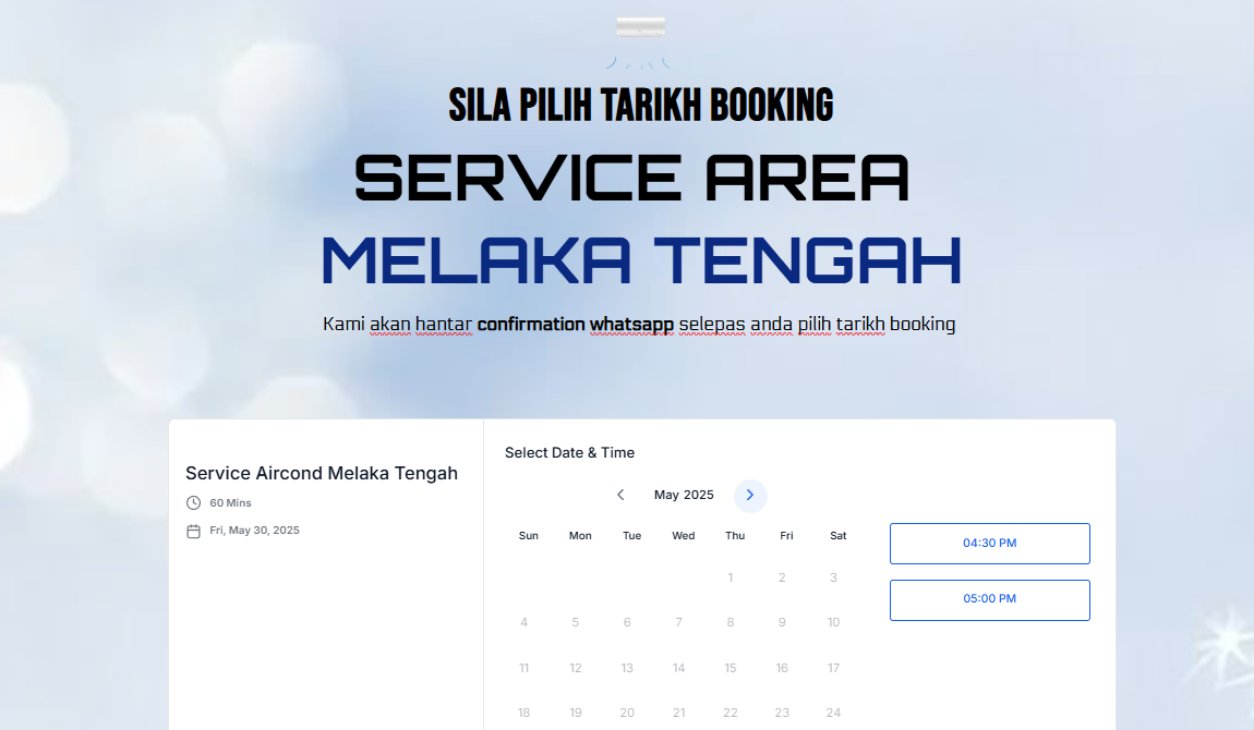 Kami tak kenakan cas 'transport' tambahan dalam Melaka. Technician kami akan terus datang ikut masa yang dipilih — tiada alasan, tiada delay.